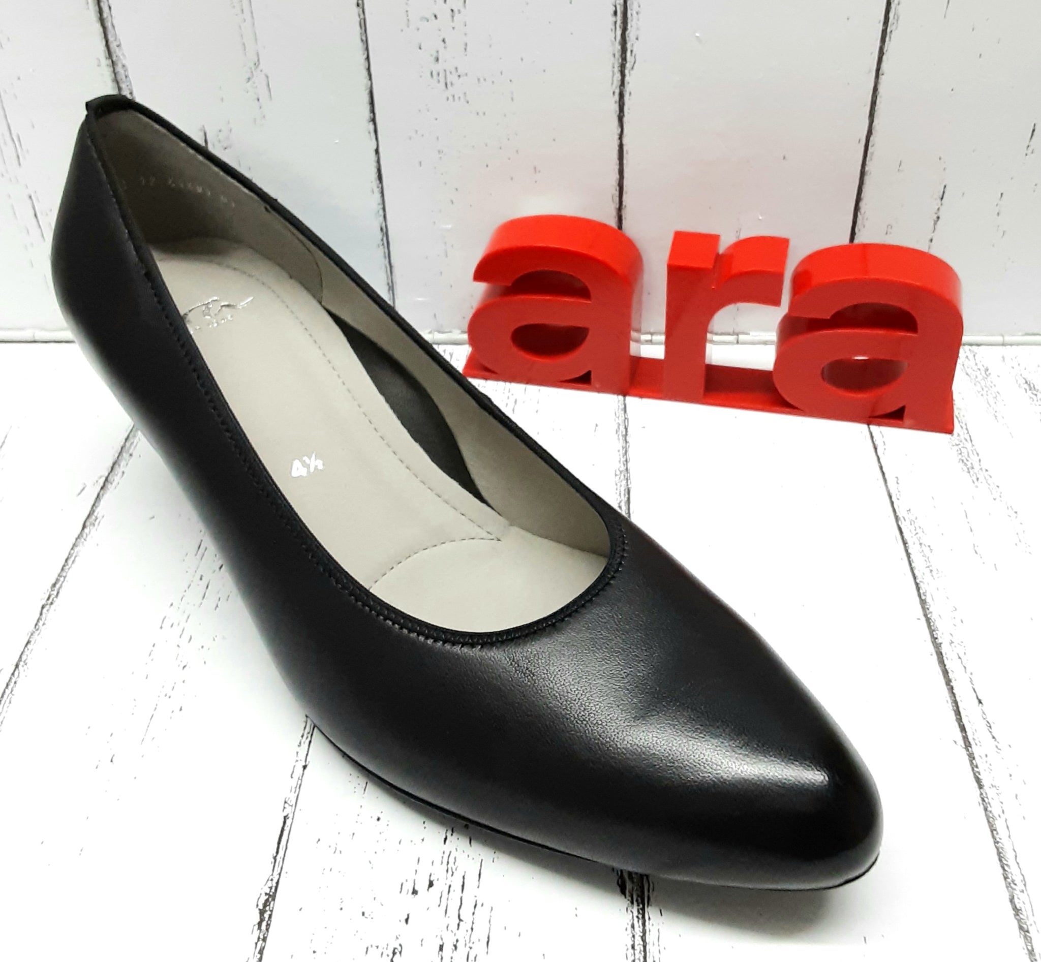 Ladies smart court shoe in a plain Black leather with a 45mm heel. This is a wider 'G' width fitting shoe.