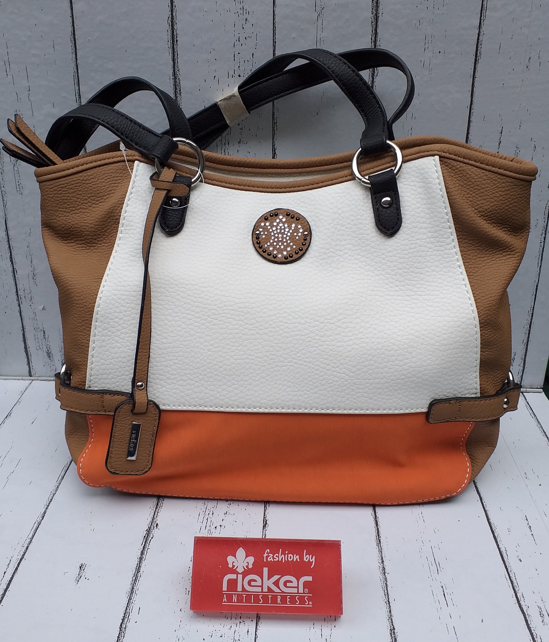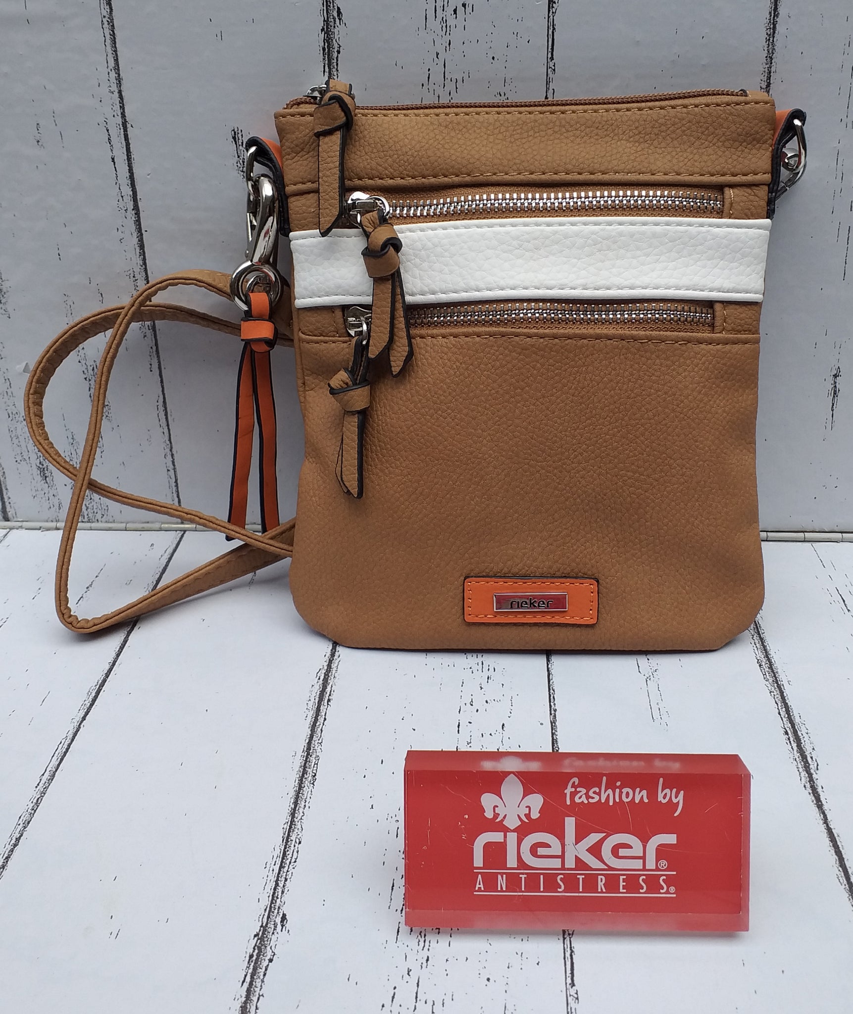 Ladies mule/slip on wedge sandal on a white sole base with two adjustable hook and loop straps in Sand with Orange multi strap.
