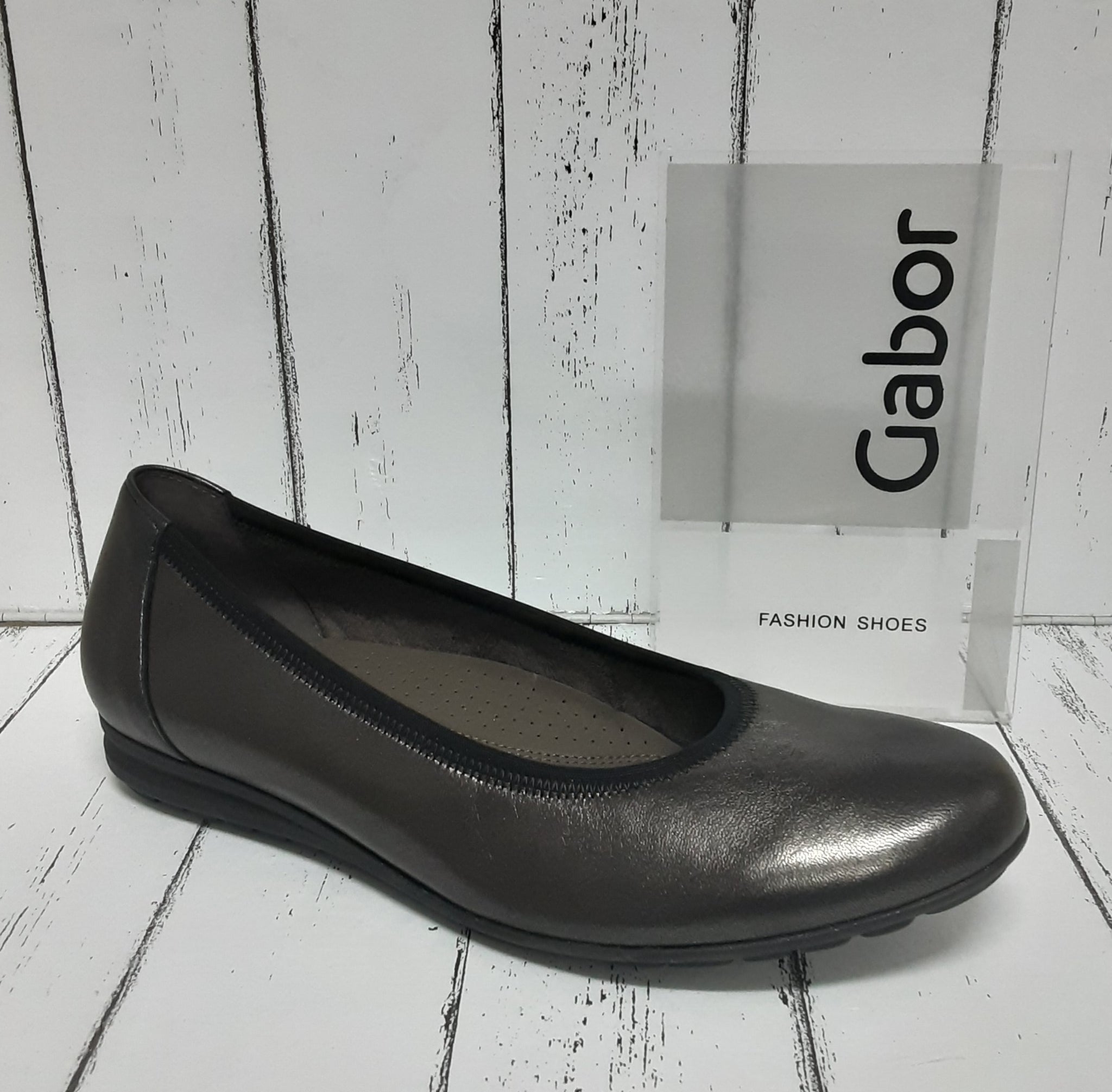 A smart/casual Ladies ballet shoe in a soft leather with an 18mm through rubber sole . This is a 'G' fitting width