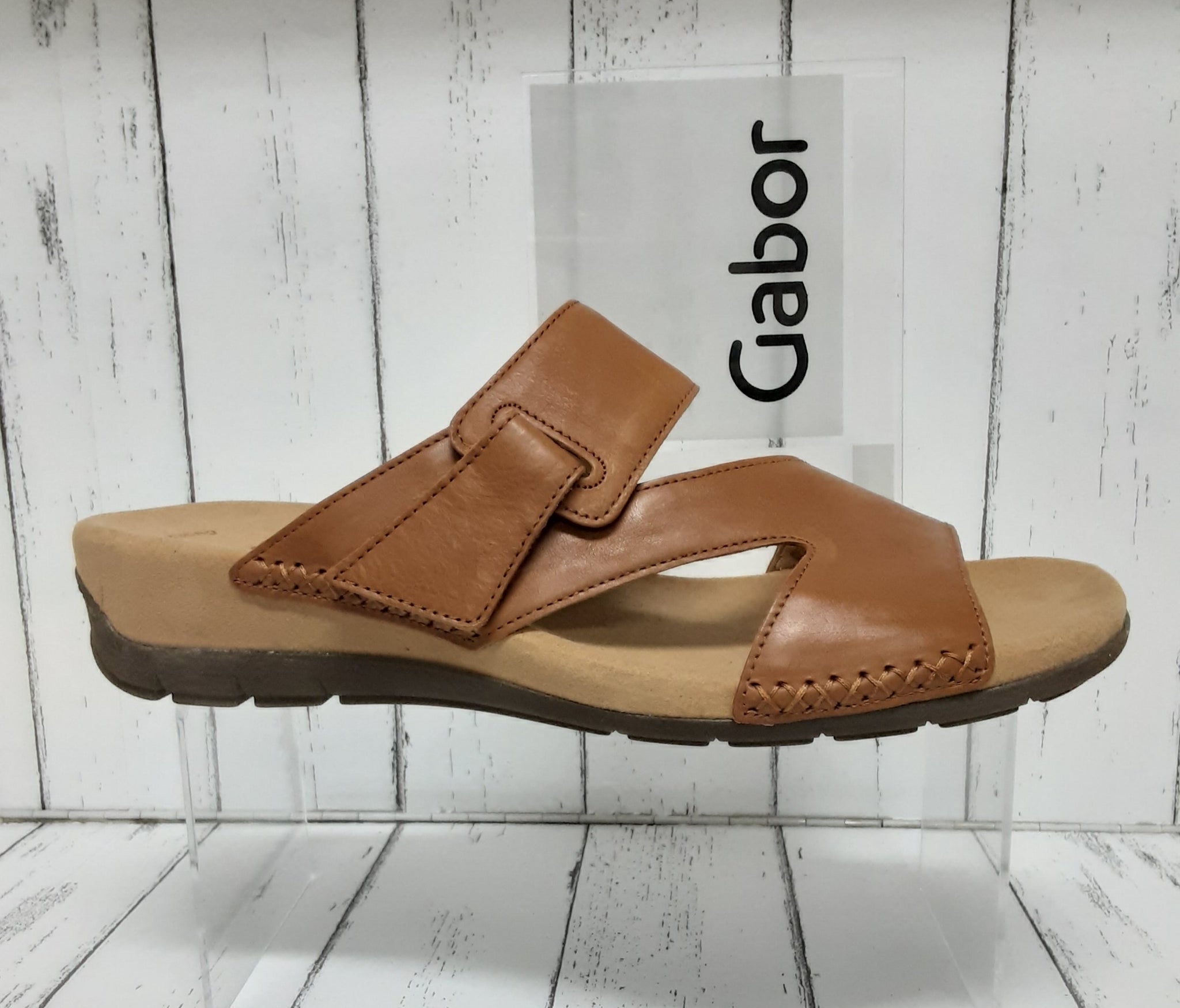 Ladies smart/casual leather slip on with adjustable velcro strap.