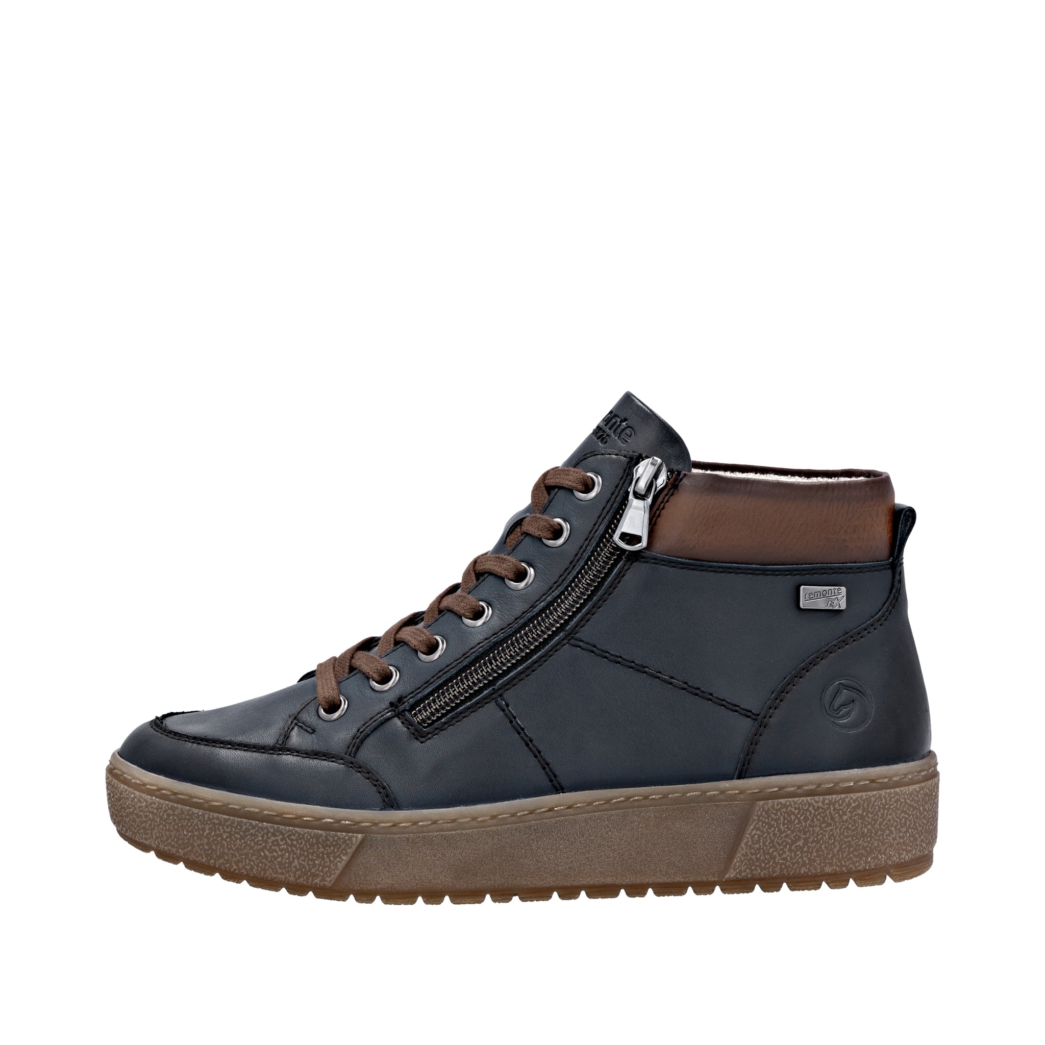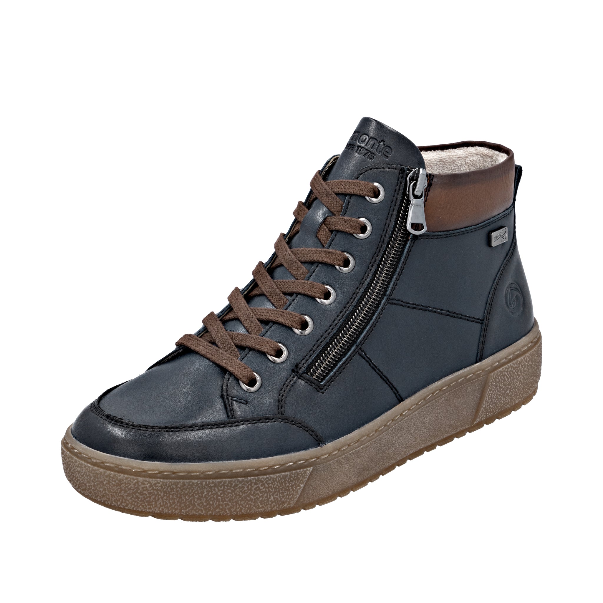 Ladies casual ‘RemonteTex’ leather boot set on a 35mm sole unit. A lightweight lace up boot with side zip for easy access, , warm inner lining, a shock absorbent flexible gum sole, water resistance and plenty of toe room. Another stylish and practical everyday boot with quality and above all comfort!